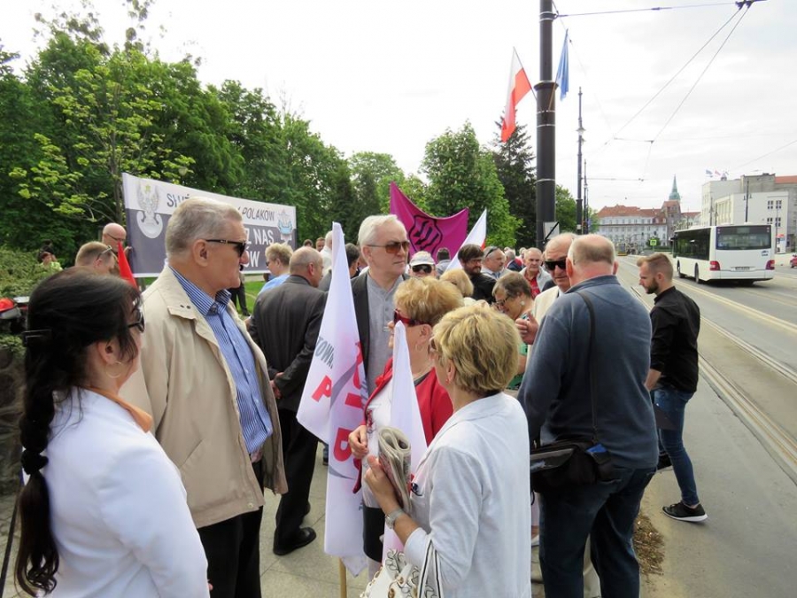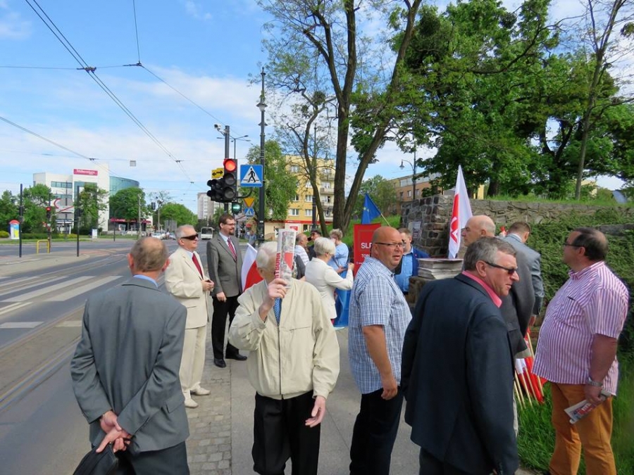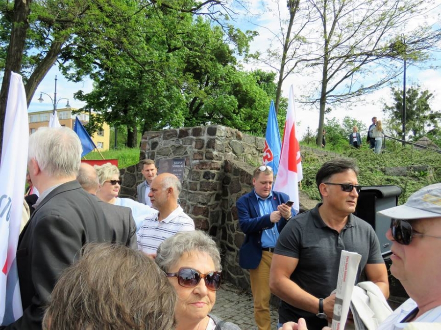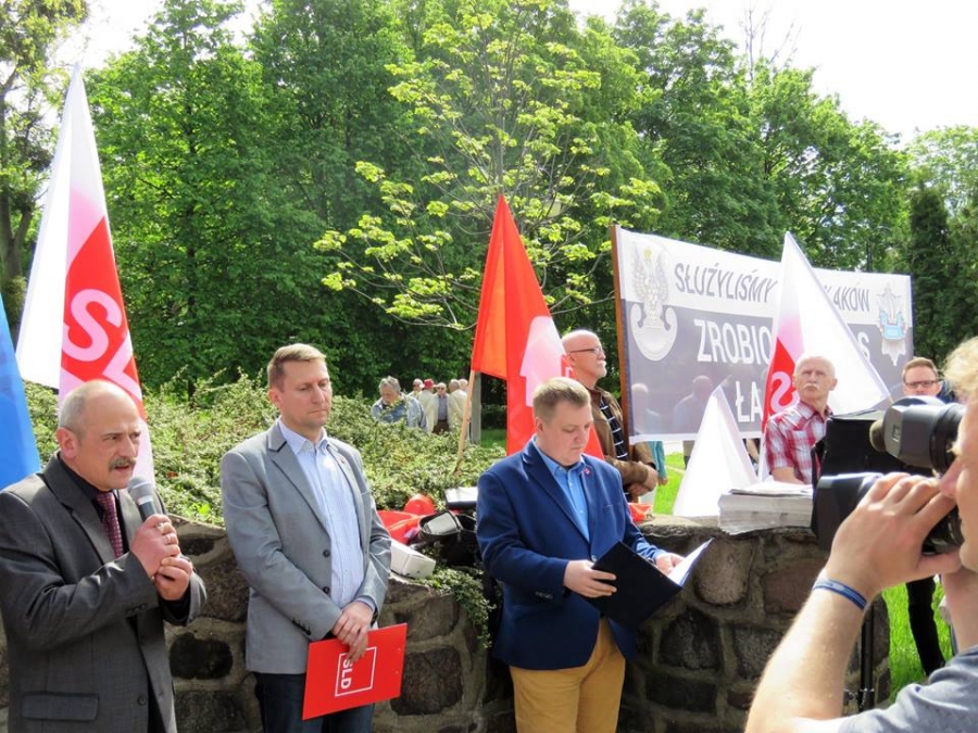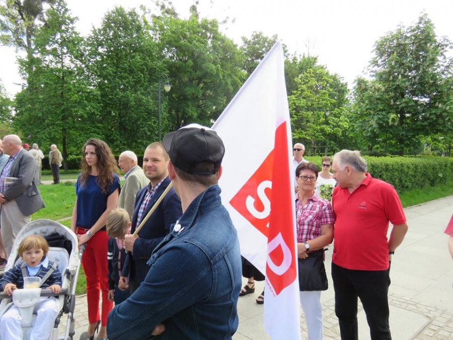Tradycyjnie z okazji Święta Pracy w Toruniu odbył się dzisiaj okolicznościowy wiec. W miejscu gdzie do niedawna wisiała tablica upamiętniająca Juliana Nowickiego zebrani wysłuchali okolicznościowych przemówień. Podkreślano w nich głównie obecną sytuację, w której znaleźli się emerytowani funkcjonariusze służb mundurowych oraz nauczyciele po reformie oświaty. Poruszano także kwestie praw kobiet i godnego funkcjonowania osób niepełnosprawnych oraz ich rodzin. Na zakończenie podkreślono wartości, którymi kieruje się dzisiejsza lewica, a które to są zbieżne z tymi, będącymi fundamentem zjednoczonej Europy. Dziękujemy wszystkim za przybycie. Członkom i sympatykom SLD, przedstawicielom służb mundurowych i wojska, delegacji ZNP oraz środowisk broniących praw kobiet. Przede wszystkim jednak, dziękujemy przybyłym mieszkańcom Torunia, którzy mimo dzielących nas różnic przybyli by wspólnie domagać się poszanowania godności, praw pracowniczych i praw człowieka z prawami kobiet i osób niepełnosprawnych w szczególności. Dziękujemy, w imieniu organizatorów - szef SLD w Toruniu i powiecie toruńskom Marek Jopp. Zdjęcia - Dawid Podlewski.